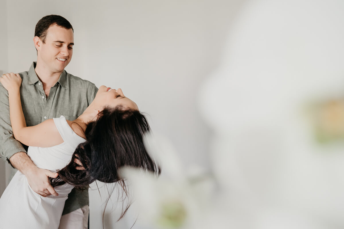 Essa é história da Carol e do Diogo! Conheci esse casal lindo, Caroline Gerolin e Diogo Medeiros, durante o Encontro de Noivos que eles fizeram na Paróquia São Marcos, na Barra da Tijuca/RJ, o qual, sempre que possível, participamos, eu e meu marido, voluntariamente. É um momento de preparação e evangelização dos casais que escolheram serem abençoados na igreja católica e que vão iniciar juntos a sua caminhada de fé. Quando nos casamos, há quase 12 anos, esse momento nos marcou muito e, por diversas vezes, nos emocionamos durante o curso que fizemos, em Belo Horizonte/MG e ali tivemos a certeza que estávamos no caminho certo! Acredito na família e no amor acima de tudo e fico muito feliz quando vejo casais que celebram 10, 20, 30, 40, 50, 60 anos de vida a dois, principalmente nos dias de hoje! Bem, estou falando tudo isso, porque além de participar da pastoral eu fiquei pensando o que poderia fazer a mais por esses casais que estão iniciando a sua vida matrimonial. Então, pela minha profissão de fotógrafa, achei que seria interessante sortear um voucher de ensaio de casal durante o encontro como forma de presenteá-los. Eles poderiam escolher se seria um pre wedding ou um pós wedding, de acordo com a vontade deles. E, para a minha alegria, a Carol e o Diogo foram os primeiros casais a serem sorteados! Ela mesma me disse no dia que tinha certeza que iria ganhar o sorteio, pois ambos são apaixonados por fotos e gostariam muito de ter aquele ensaio feito por mim!! E assim foi feito, eles foram os ganhadores do voucher e eu não poderia ter ficado mais feliz!! Após o encontro de noivos, marcamos uma data para nos reunirmos e nos conhecermos melhor e conversamos sobre o nosso ensaio, como dicas de locais, looks, maquiagem, etc. A Carol e o Diogo já tinham feito um ensaio de pre wedding na praia e então optaram por fazerem um pós wedding. Escolheram um lugar muito especial para eles e que tem todo um significado de vida que é a própria casa onde moram e seu entorno!! Achei perfeita a ideia!! Como o casamento aconteceria dali há alguns meses, fomos mantendo contato até a data do nosso ensaio, o que aconteceu no finalzinho de outubro. Do namoro ao casamento, foram 4 anos de muito amor, companheirismo, amizade e união entre a Carol e o Diogo. Eles são um casal que se completam em tudo e isso é bem visível para aqueles que os conhecem. Adoram viajar e (pasmem!!) fazem um álbum de cada viagem que realizam juntos!!! Uau!!! Adorei ver isso e sou totalmente a favor ter memórias impressas das nossas fotografias!! Como hoje tudo é digital, nem sempre as pessoas imprimem as recordações que querem guardar para a vida e para um dia mostrarem para seus filhos, netos, etc, mas a tecnologia é tão avançada, que hoje é uma, amanhã é outra... quem aí se lembra dos disquetes, das fitas de vídeo, das fitas cassetes?? Pois é, a foto impressa permanece, já os disquetes hoje são praticamente peças de museu, não é mesmo?!!! Muito bem Carol e Diogo!! Continuem assim!!!! O nosso ensaio foi todo nesse clima romântico, assim como eles são! Agendamos para o período da tarde, para aproveitar um pouquinho do pôr do sol na região onde moram, na Barra da Tijuca. Fizemos também alguns clicks no apartamento onde moram, com direito à dancinha na sala e, claro, um bom cafezinho!!! Foi um dia muito especial! Gratidão por esse casal lindo que me deu a oportunidade de clicar um momento tão importante de suas vidas!!! Carol e Diogo, que Deus os abençoem e os guiem por toda a caminhada de vocês!! Assistam ao vídeo e, em seguida, vejam as fotos abaixo.