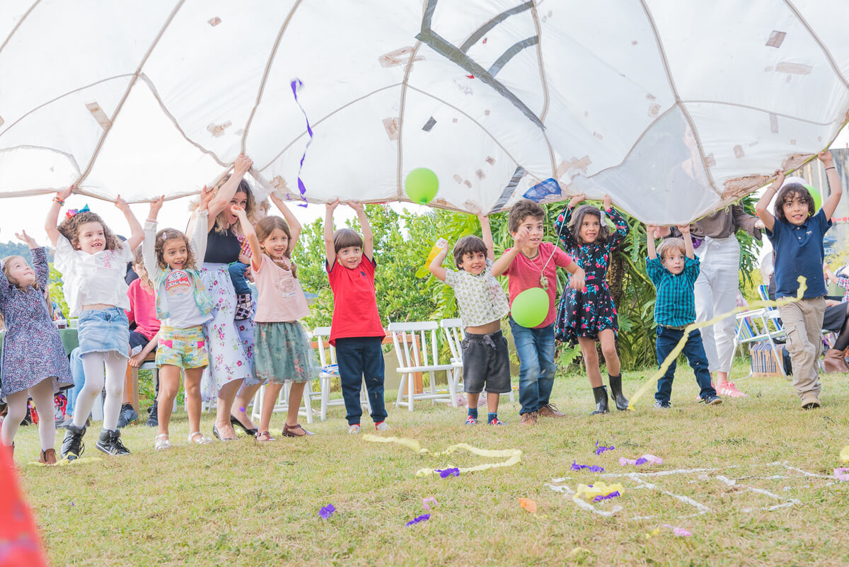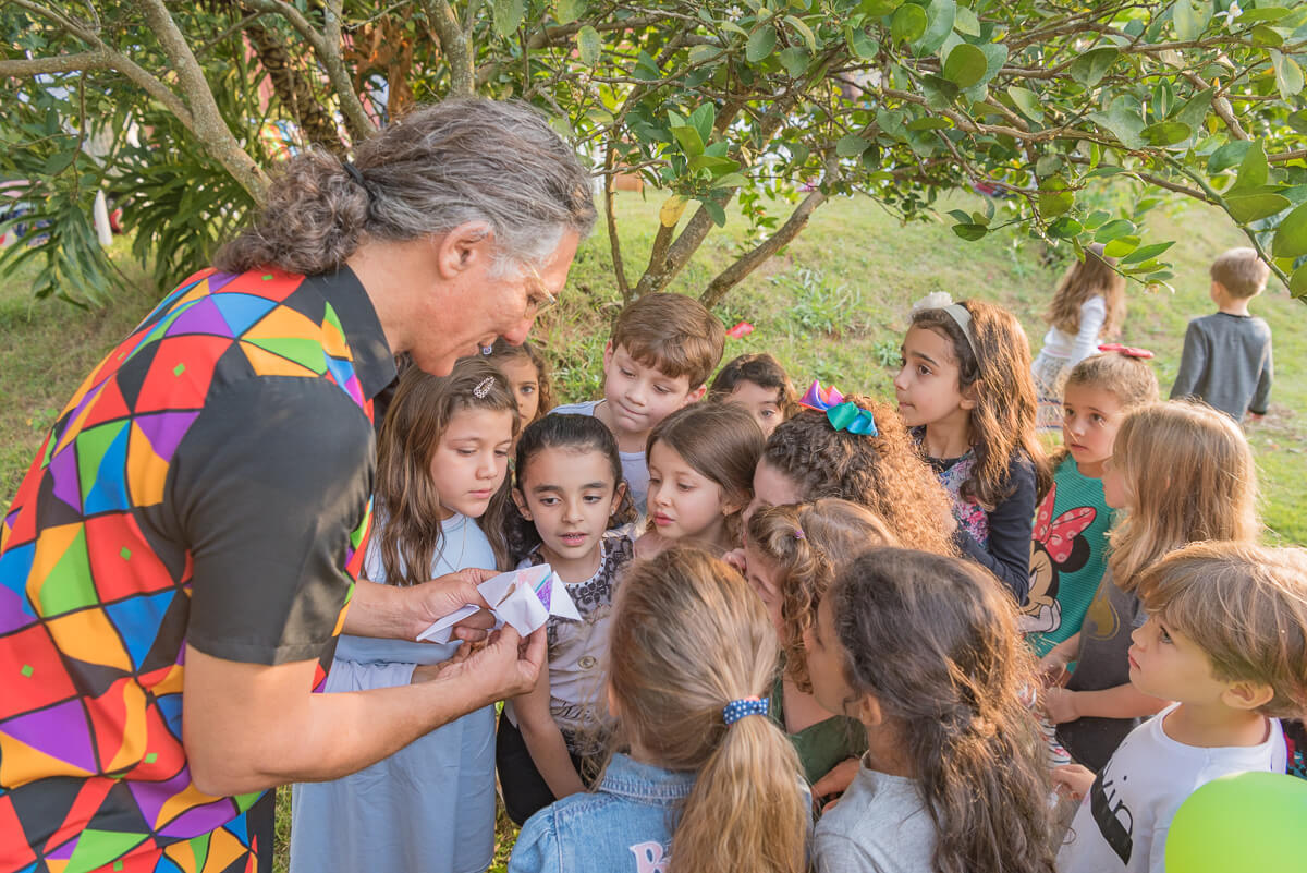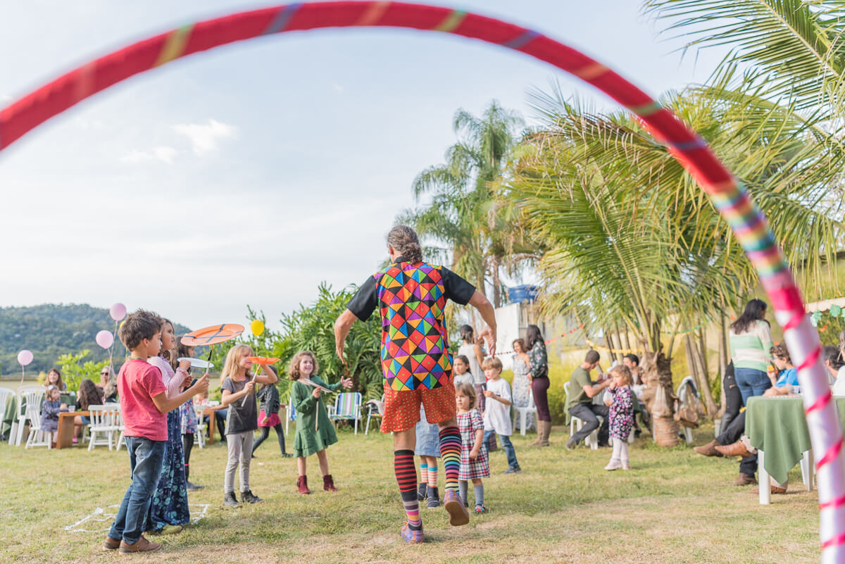 A festa foi durante o dia e estava super animada. Teve brincadeiras, mágicas e muita diversão para a criançada e também para os adultos que entraram na roda e aproveitaram bastante!