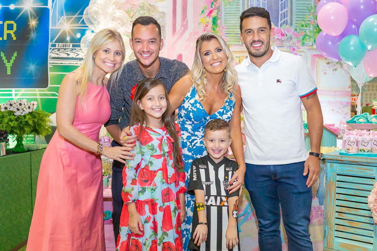 Esse ano resolveram comemorar em um único evento os aniversários dos seus filhos Alicia, de 9 anos e Réver Jr., de 5 anos com os temas "Jardins" para a Alicia e "Futebol" para o Réver Jr.